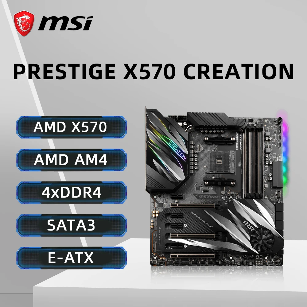MSI PRESTIGE X570 CREATION Motherboard Support 3600X 5600G 5600X 5700X 5800X3D 5950X CPU DDR4 M.2 NVME HDMI AM4 Mainboard