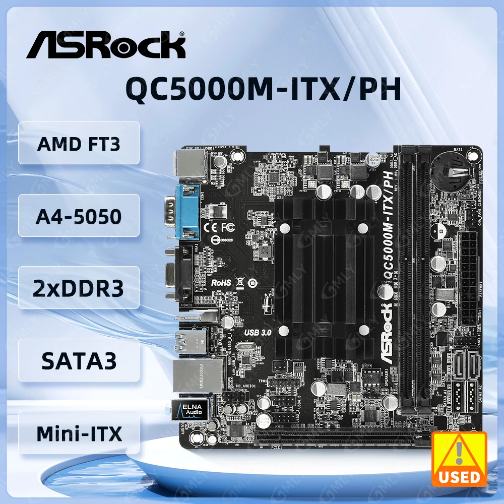 StoneTaskin For ASRock QC5000M-ITX/PH Motherboard AMD FT3 Kabini A4-5000 Quad-Core APU DDR3 16GB SATA 3 HDMI USB 3.1 Mini-ITX Motherboard Fully Tested Free Shipping