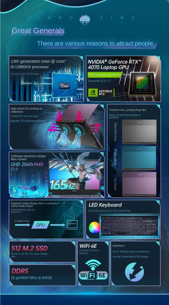 New Genuine Colorful General Star X15-AT Gaming Laptop Intel i9-13900HX RTX4070 16-inch 165Hz 2.5K E-Sports Game Notebook