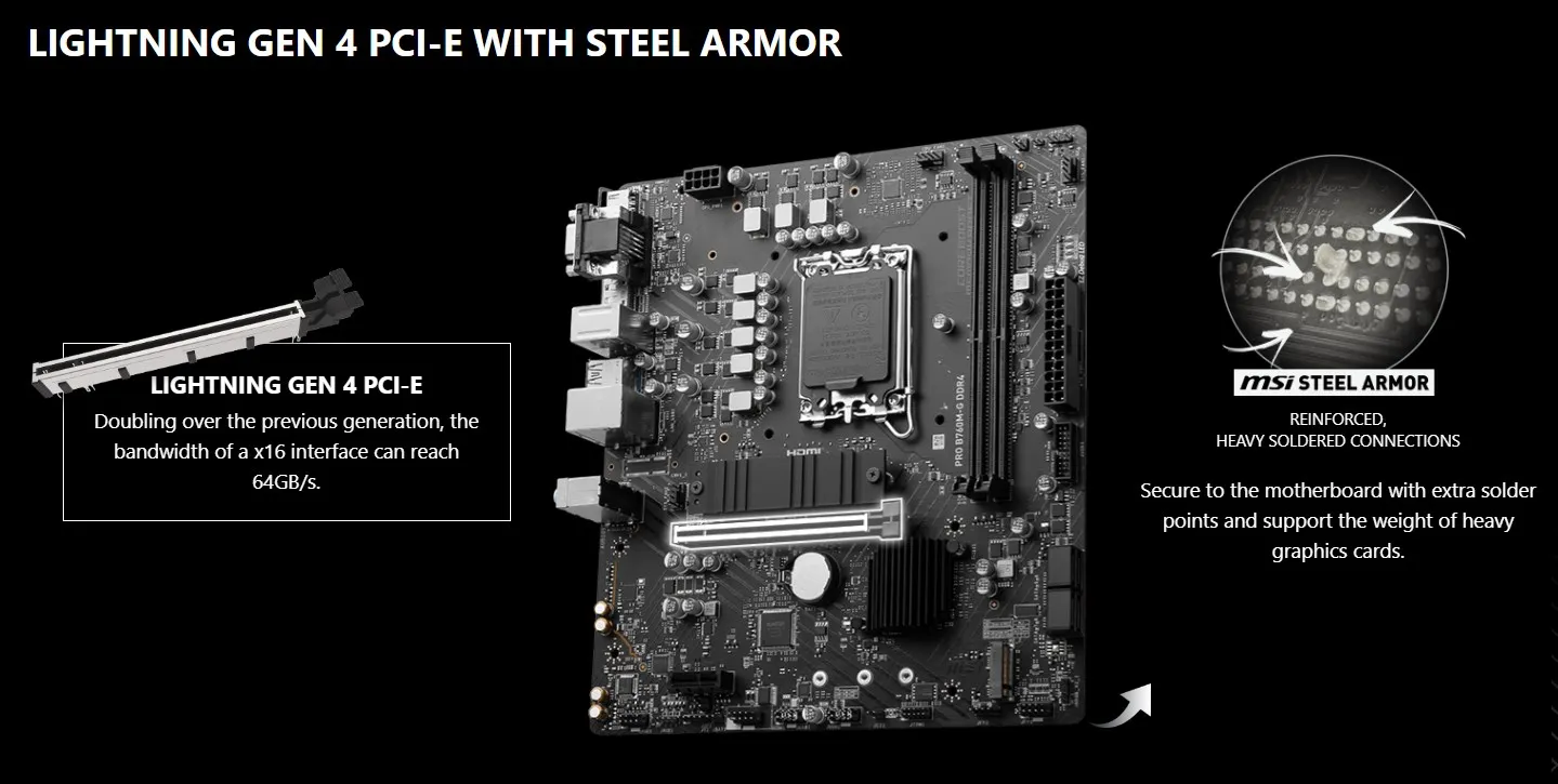 MSI PRO B760M-G DDR4 Motherboard Support i9-14900KF i7-12700KF i5-13400 CPU DDR4 4800MHz 64GB LGA 1700 HDMI NVME M.2 PCle 4.0
