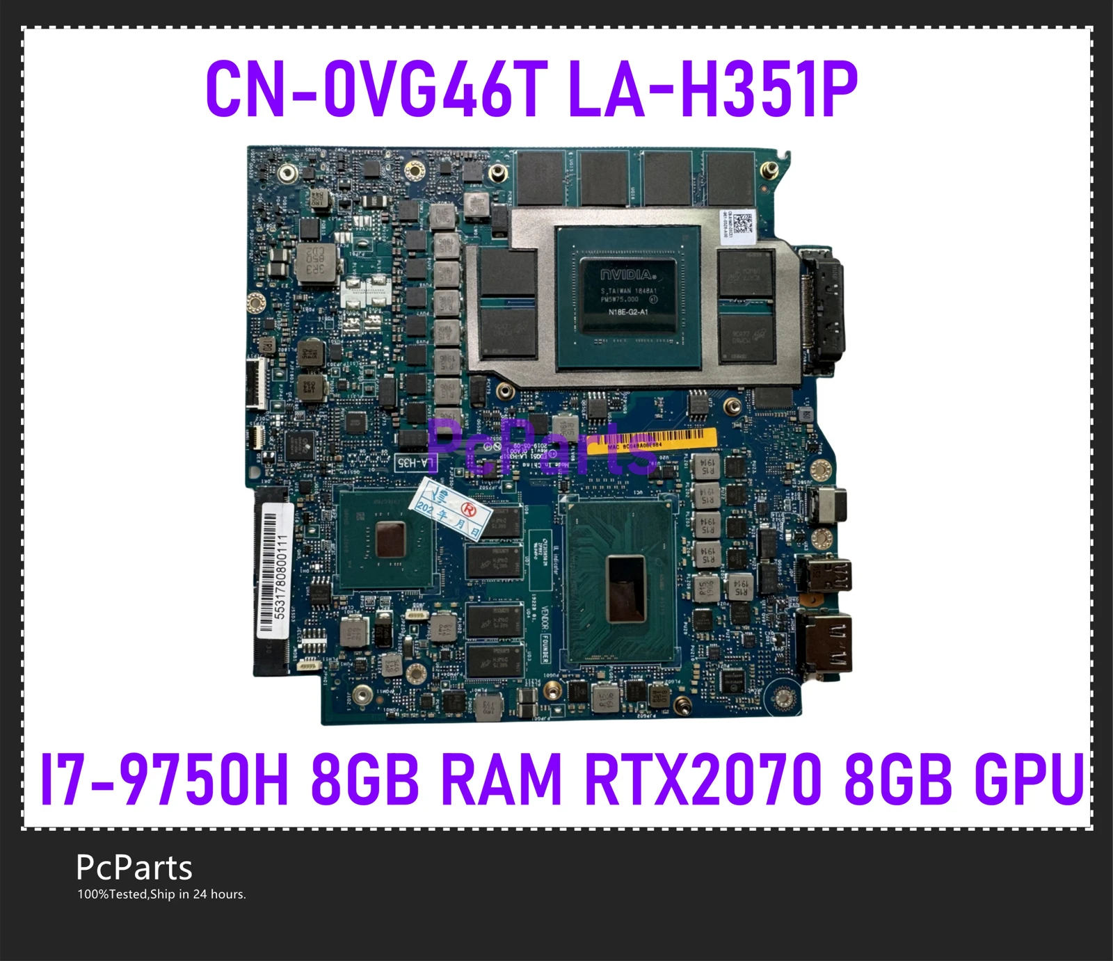 PCparts CN-0VG46T EDQ51 LA-H351P For Dell Alienware M17 R2 Laptop Motherboard I7-9750H 8GB RAM NVidia RTX2070 8GB GDDR6 MB