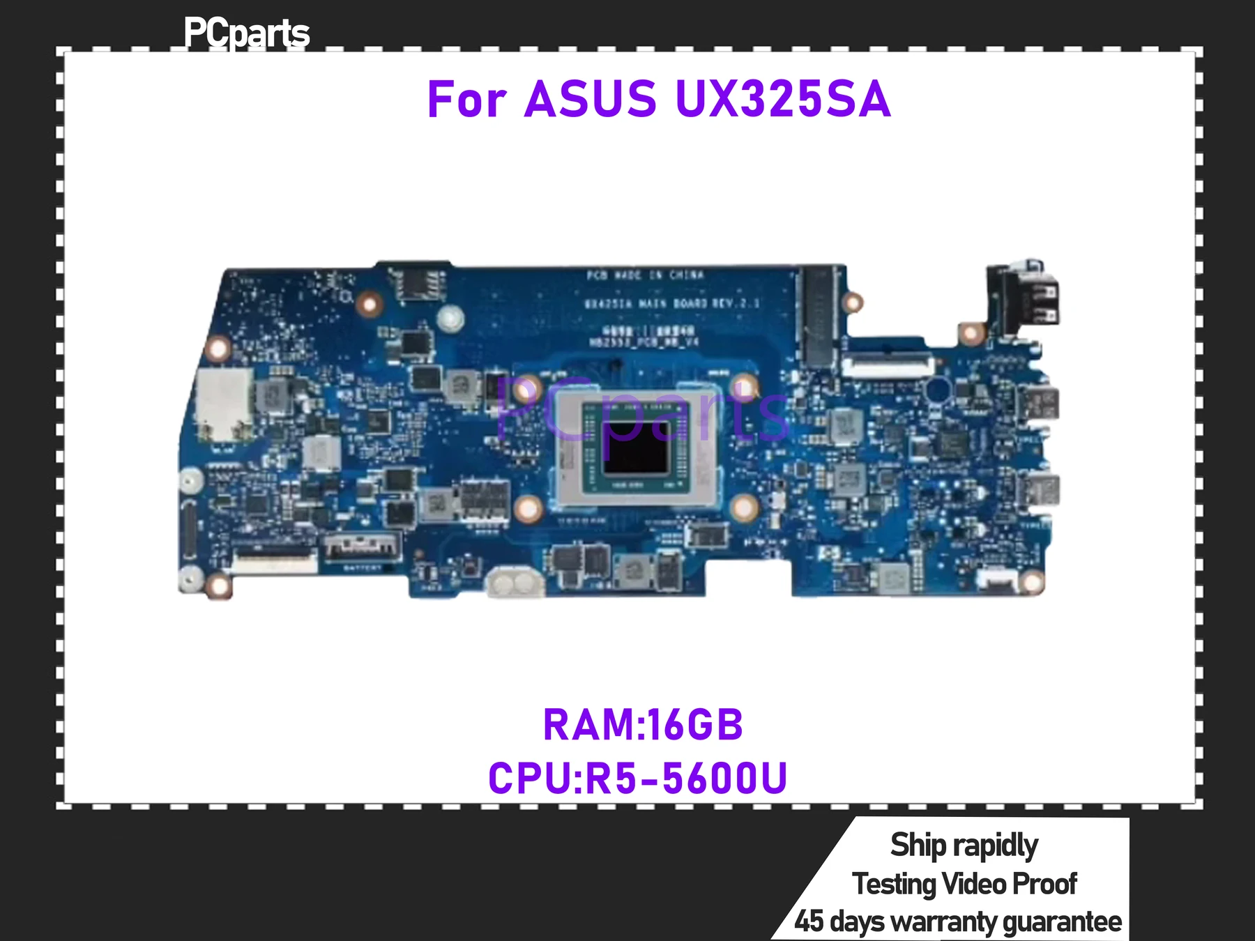 PCparts Refurbished For ASUS UX325SA Laptop Motherboard R5-5600U CPU 16GB RAM MB Mainboard 100% Tested