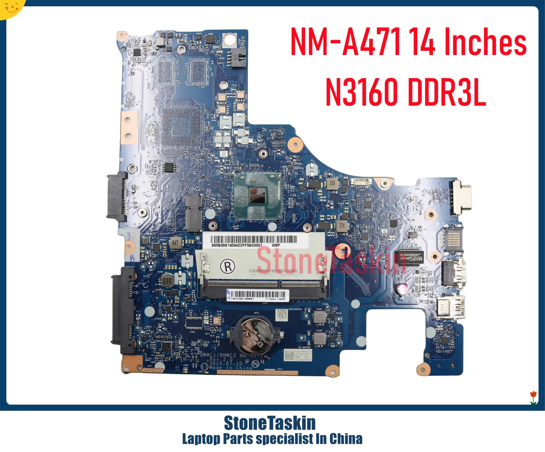 StoneTaskin High quality 5B20K14034 For Lenovo Idepad Ideapad 300-14IBR Laptop Motherboard N3050 N3160 DDR3L Mainboard NM-A471