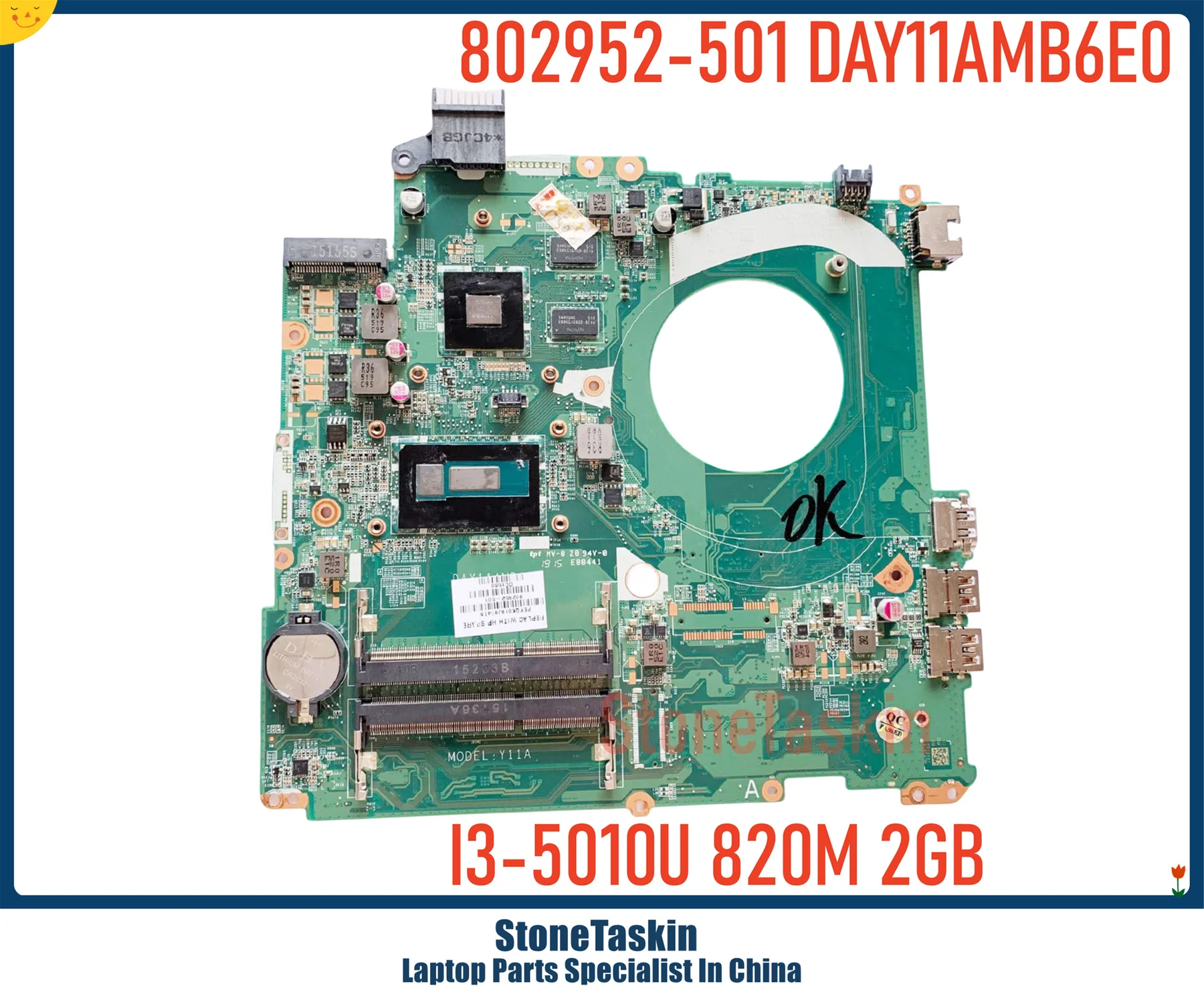 StoneTaskin High quality 802952-501 DAY11AMB6E0 For HP Pavilion 15-P 15-K Laptop Motherboard MB I3-5010U I5-5200U 840M 2GB