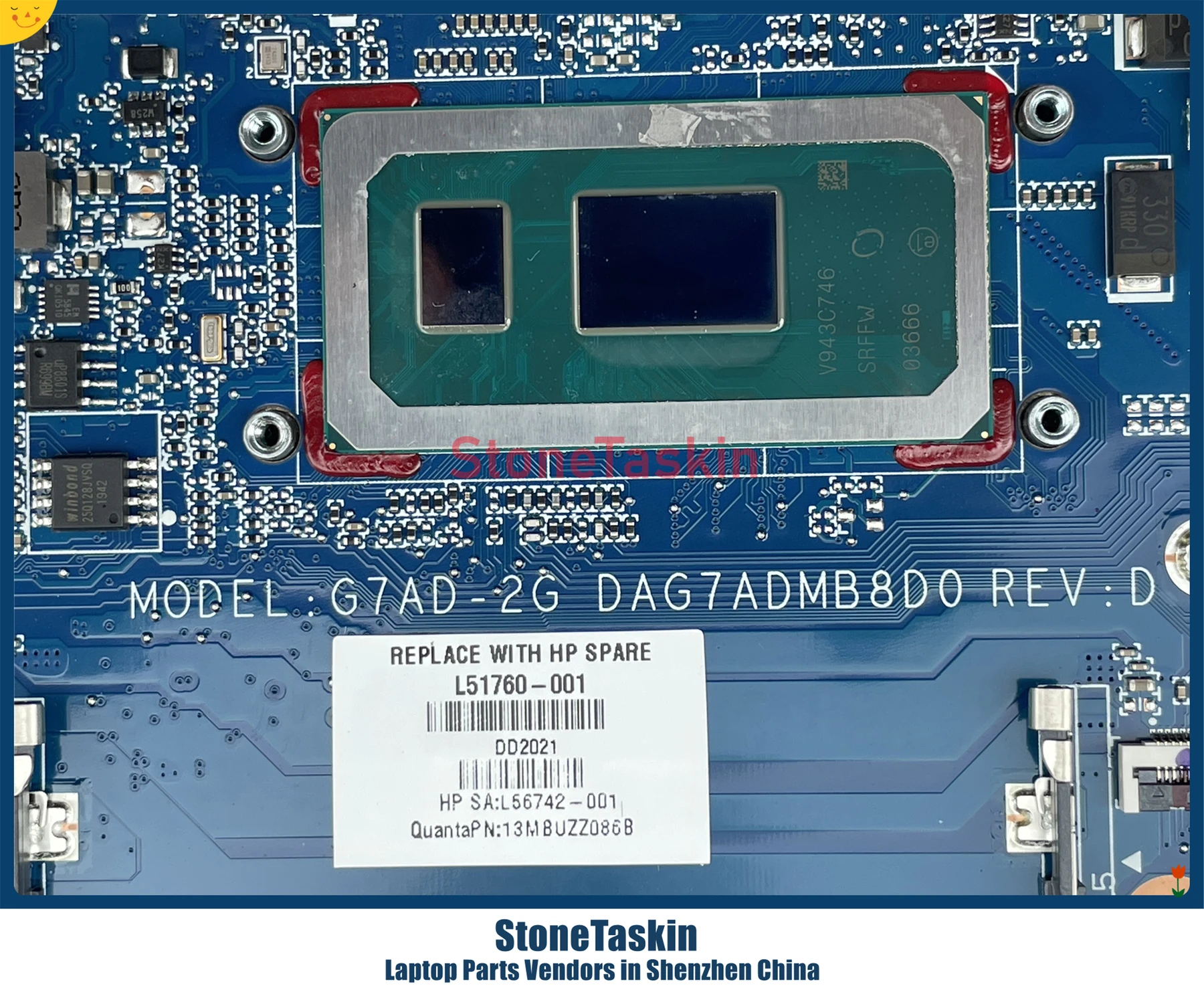 StoneTaskin L51760-601 L51760-001 For HP Pavilion 14-CE 15-CS Laptop Motherboard DAG7ADMB8E0 G7AD SRFFW I7-8565U MX130 Tested