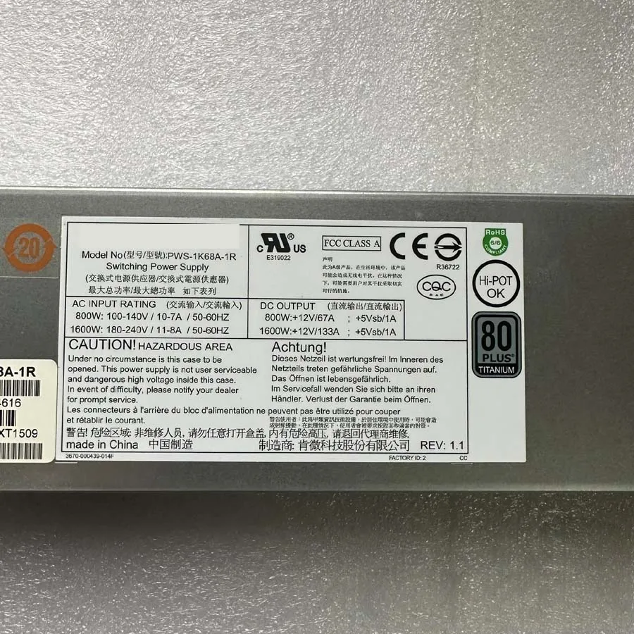 Original For Supermicro PWS-1K68A-1R 1600W 1U Redundant Power Supply 80 Plus Titanium