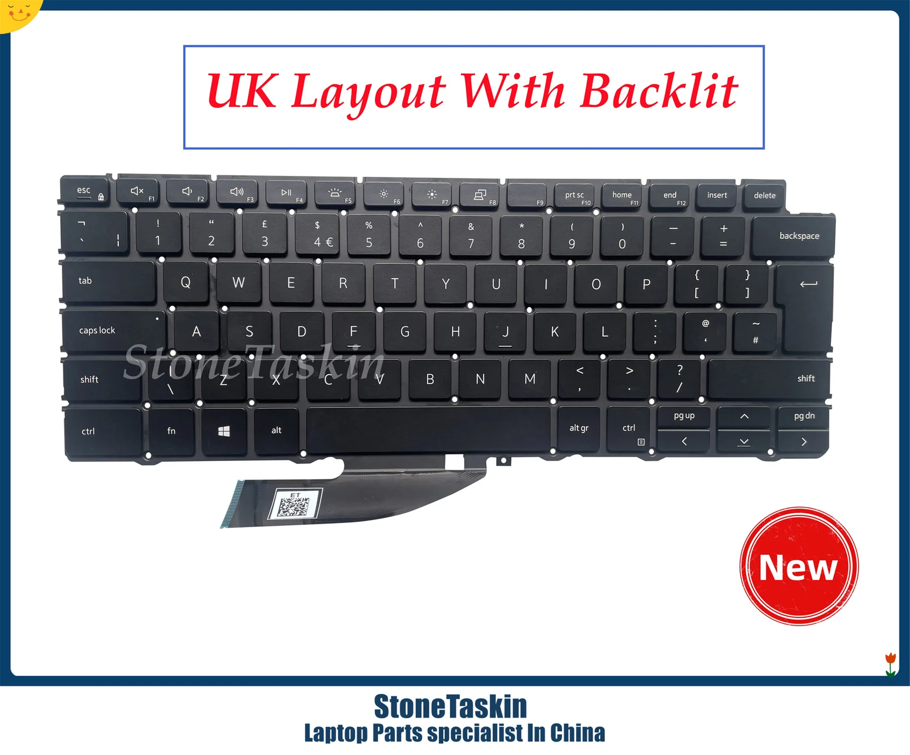StoneTaskin Original Laptop Keyboard For DELL XPS 13 7390 2-in-1 P103G 0C8WV6 C8WV6 PK132C91A15 NSK-ET0BC UK black with backlit