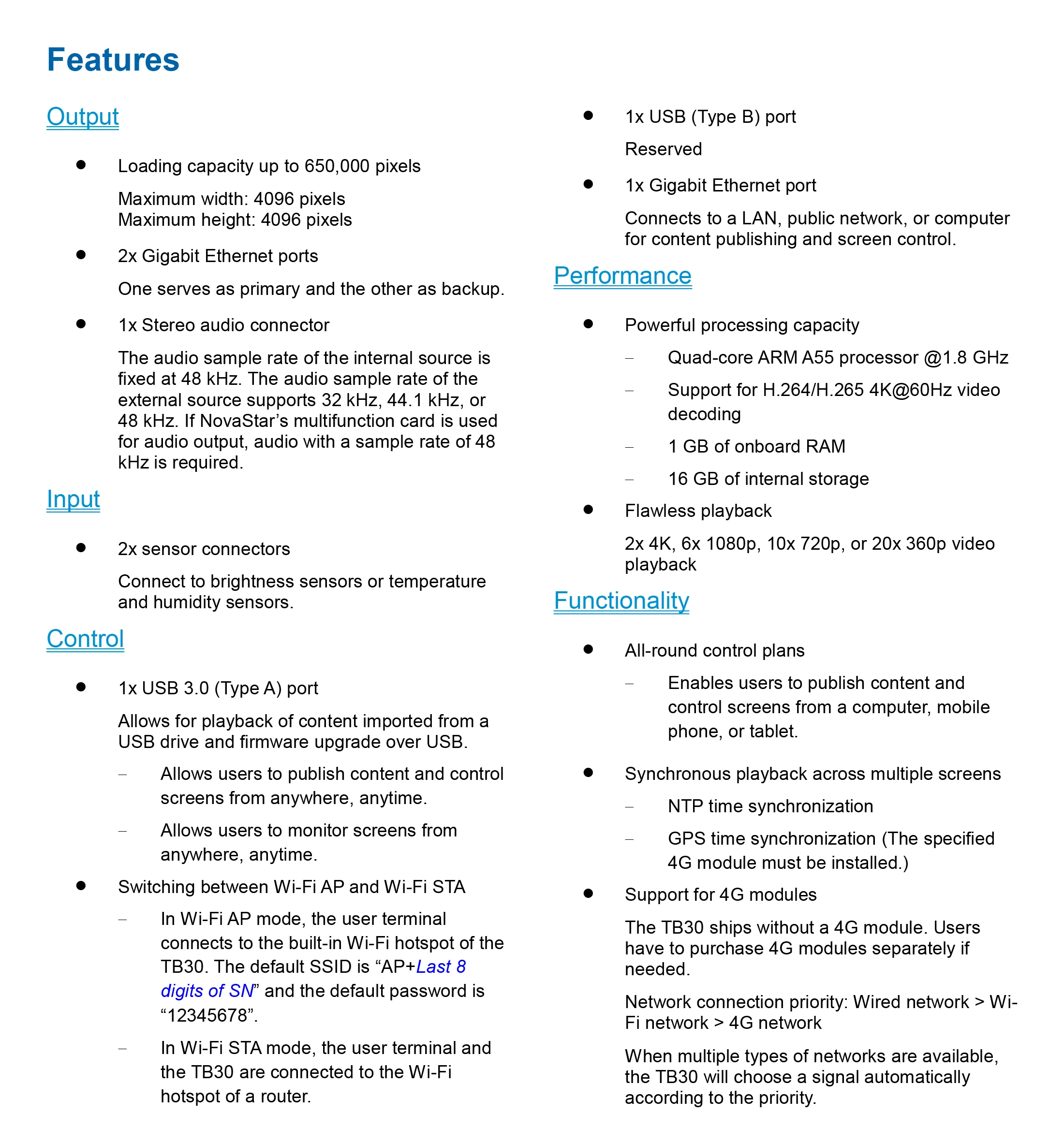 The TB30 is a new generation of multimedia player created by NovaStar for full-color LED displays. This multimedia