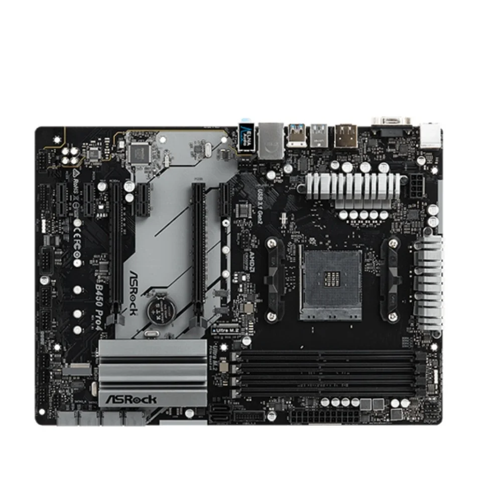 ASRock B450 PRO4 Motherboard AMD B450 DDR4 Memory AM4 Mainboard M.2 NVME ATX (Supports Ryzen 5 5600G R7 5700X3D 5800X CPU)