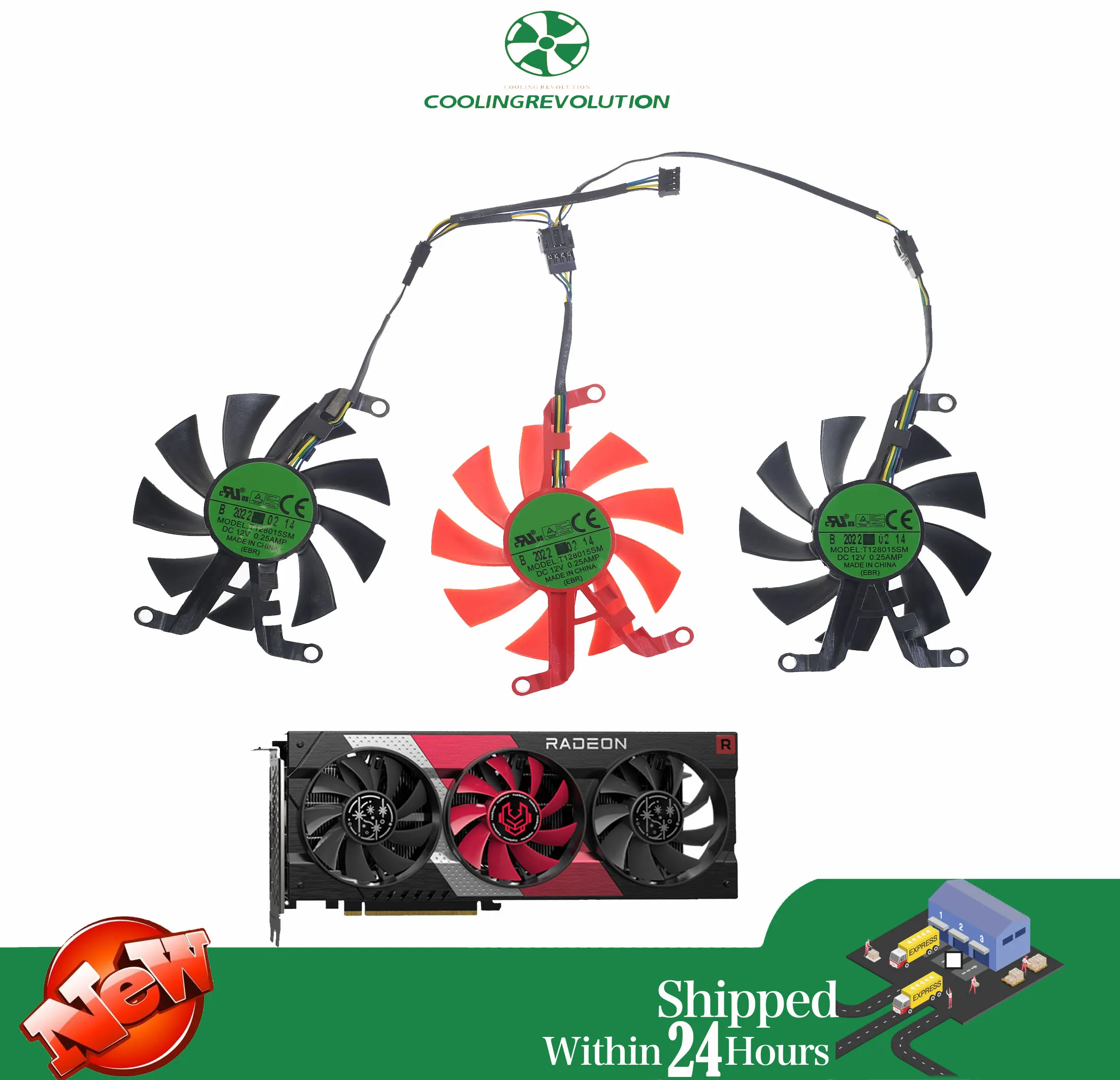 StoneTaskin 3Pcs T128015SM 75MM DC12V 0.25A 4-Pin Graphics card fan for VASTARMOR Radeon RX 6600 XT 8GB Starry Sky serie Fan Fully Tested Free Shipping