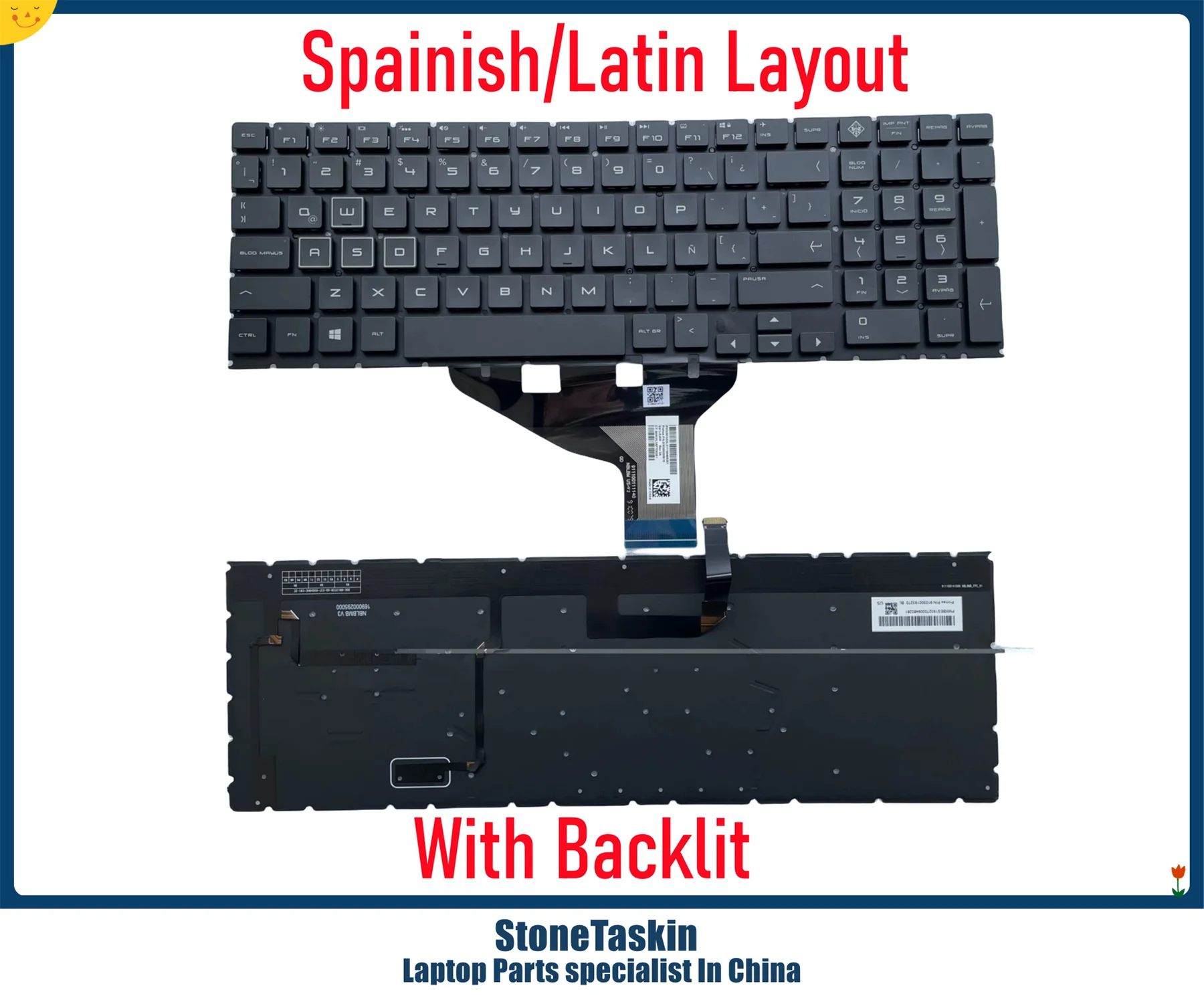 StoneTaskin Spainish Layout Keyboard for HP Omen 15-DC 15-DH TPN-C144 Q211 C143 Gaming Laptop KB White letters Backlit Latin SP