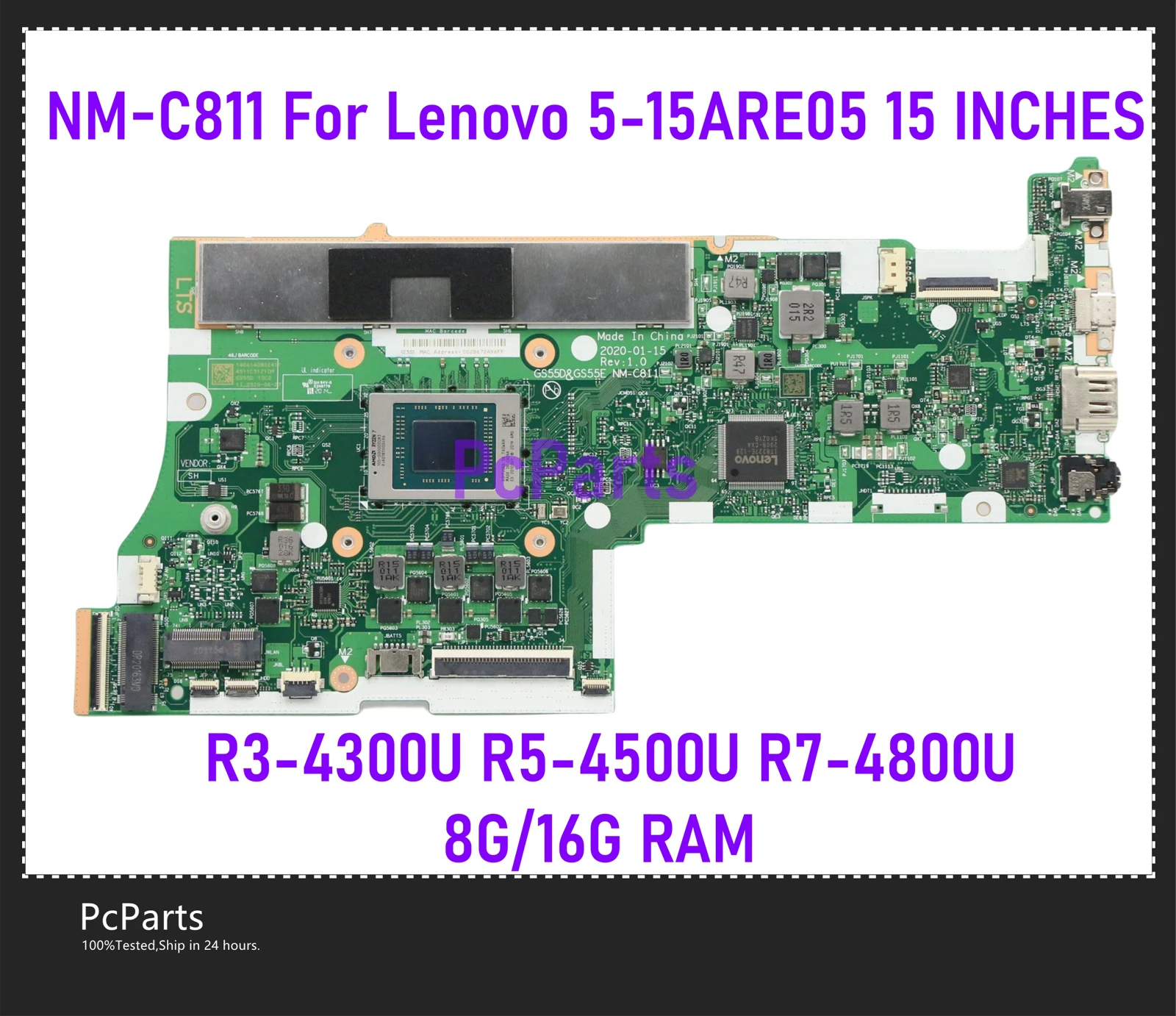 PcParts Refurbished NM-C811 For Lenovo IdeaPad 5-15ARE05 Laptop MotherBoard R3-4300U R5-4500U R7-4800U CPU 8G 16G RAM MB