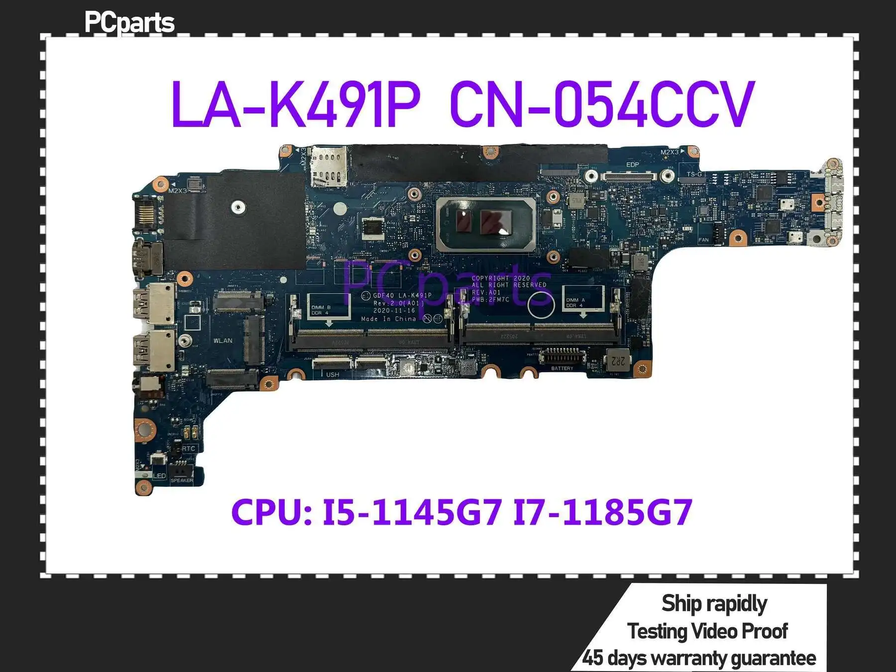 1× GDF40 LA-K491P Dell Latitude 5420 Motherboard with i5-1135G7 CPU