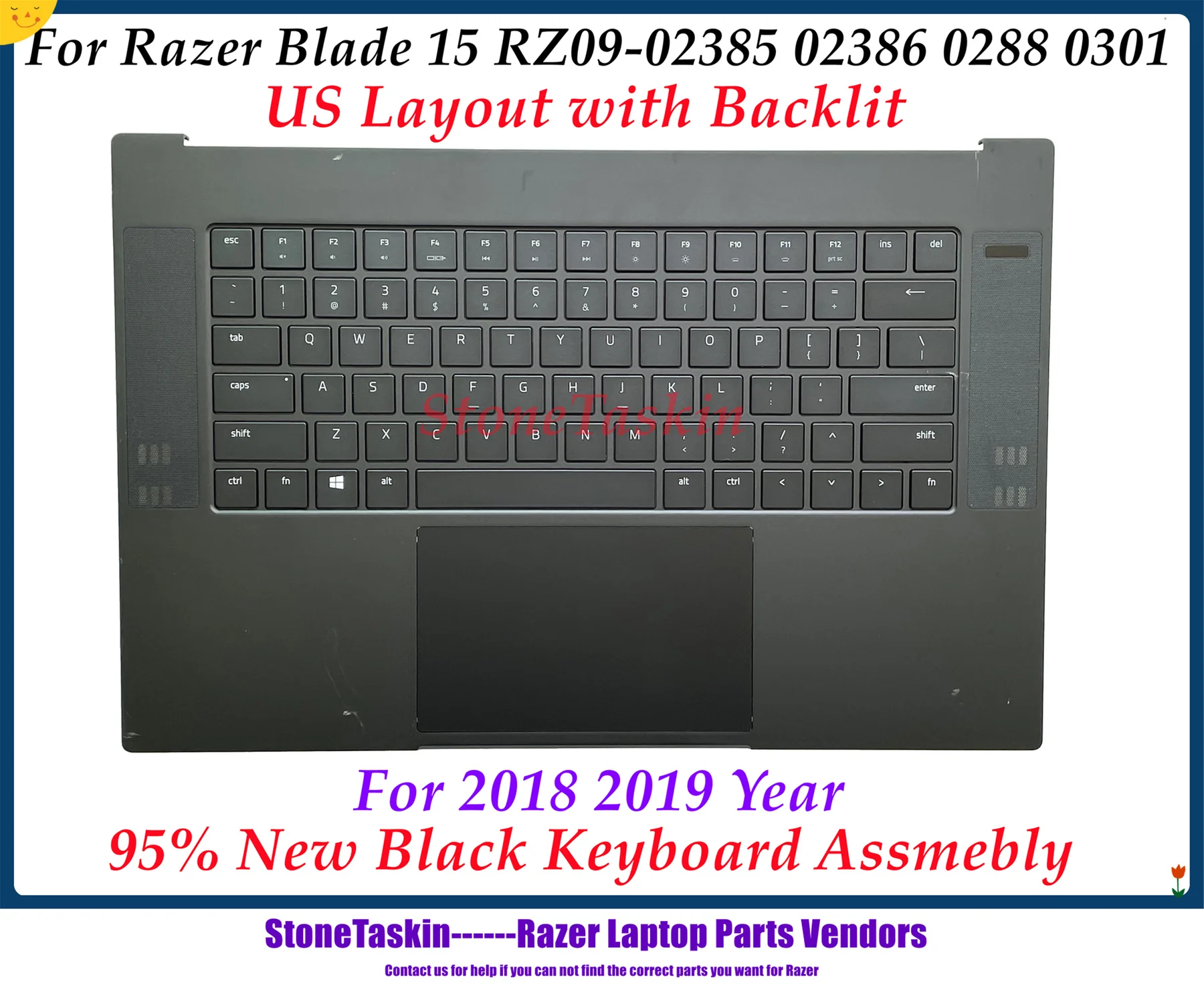 StoneTaskin 95% New US backlit laptop keyboard For Razer Blade 15 RZ09-02385 02386 0288 0301 Plamrest Touchpad Power-on Board